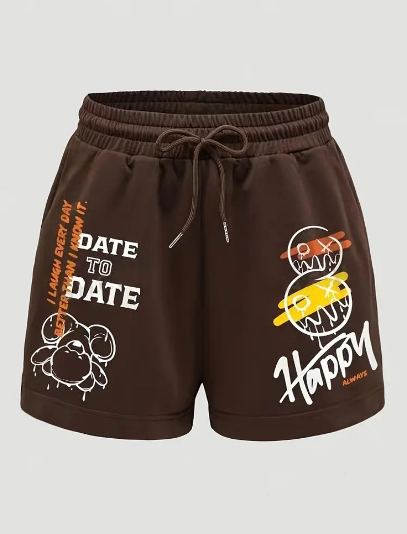 Women's Casual Alphabet Print Drawstring Shorts, 100% Polyester Knit Fabric, Slight Stretch, Regular Fit, All-Season Comfort, Spring & Summer Fashion